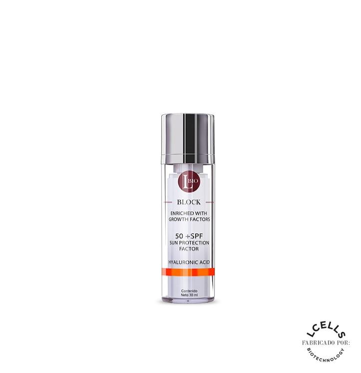Bloqueador solar en crema, con factor de protección 50+ SPF, retrasa el envejecimiento prematuro y evita quemaduras por exposición al sol. Además de brindarle una máxima humectación a la piel, cuenta con ácido hialurónico reticulado y nuestro innovador activo, los factores de crecimiento, los cuales proveen una acción estimulante y regenerativa en la piel.